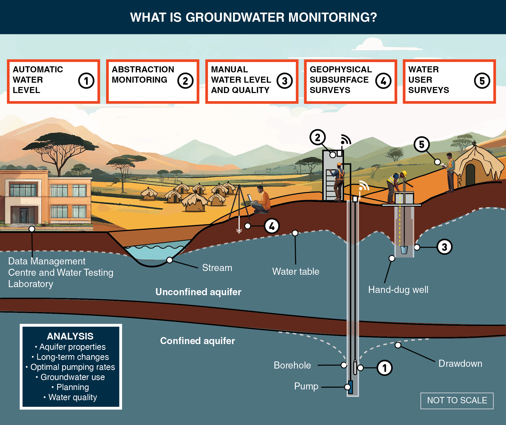 Run district-level pilots where “strategic” boreholes are critical in dry seasons. Use simple methods (like manual monitoring) where they’re more reliable than expensive kit.